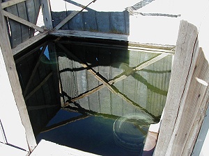 algae coats the bottoms and each pool has submerged seating (courtesy of