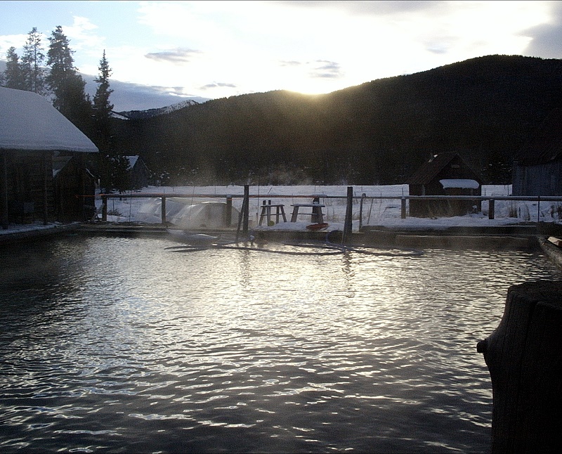 6x6 ft spring box pools (113°) and a 50x85 ft large pool (100°-104°)
