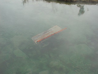 where the ice was broken that clearly revealed water beneath.