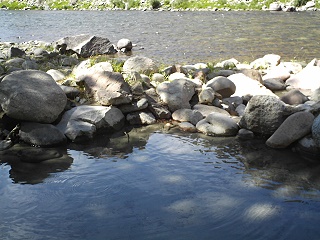 Salmon River. Lunchbreak features a single pool with rock walls and