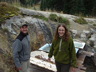 The water seemed hot enough, but we were in a rush to some other hot springs in the area so only a quick leg soak was in order during our visit. There was an outline of a