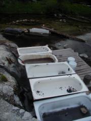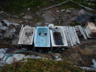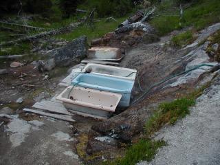 No trash, no tubs, but there ARE two (rather silty) natural pools