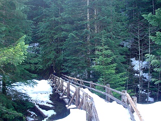 through a huge broken stump. The 2nd had a semi-narrow earth bridge,