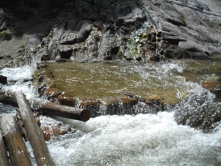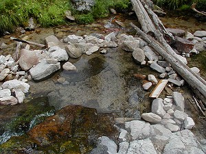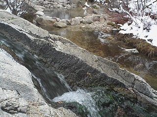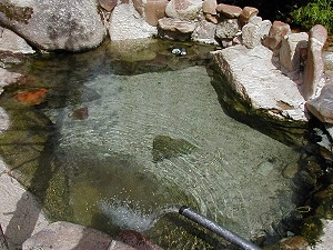plastic pipe that feeds the pool with hot water (naturally siphoned from