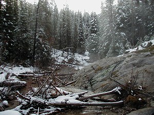 by Trail Creek's empty pullout off the Warm Lake Highway out of Cascade,