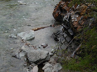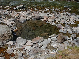 which has 2 stagnant, low-flow algae laden pools not suitable for soaking.