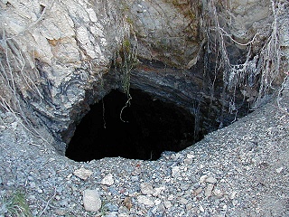 peek-hole into the mine shaft which is hard to see in due to the steam